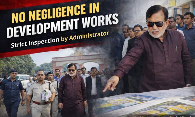 निरीक्षण के दौरान माननीय प्रशासक ने संबंधित ठेकेदारों व विभागीय अधिकारियों को कड़े निर्देश देते हुए कहा कि किसी भी स्तर पर ढिलाई, देरी या गुणवत्ता में कमी पाई गई तो कड़ी कार्रवाई की जाएगी। उन्होंने यह भी स्पष्ट किया कि विकास योजनाओं का लाभ आम जनता तक समय पर पहुंचना चाहिए।