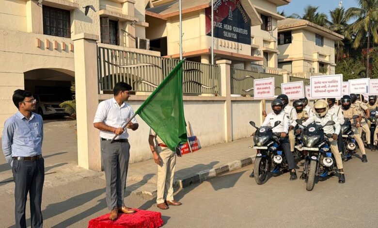 सड़क सुरक्षा माह के अंतर्गत यातायात पुलिस विभाग, दादरा एवं नगर हवेली द्वारा आयोजित यातायात जागरूकता रैली का शुभारंभ आज सिलवासा में किया गया। इस अवसर पर सिलवासा के पुलिस अधीक्षक (SP) श्री सचिन यादव ने हरी झंडी दिखाकर रैली को रवाना किया और आमजन को सड़क सुरक्षा के प्रति जागरूक रहने का संदेश दिया।